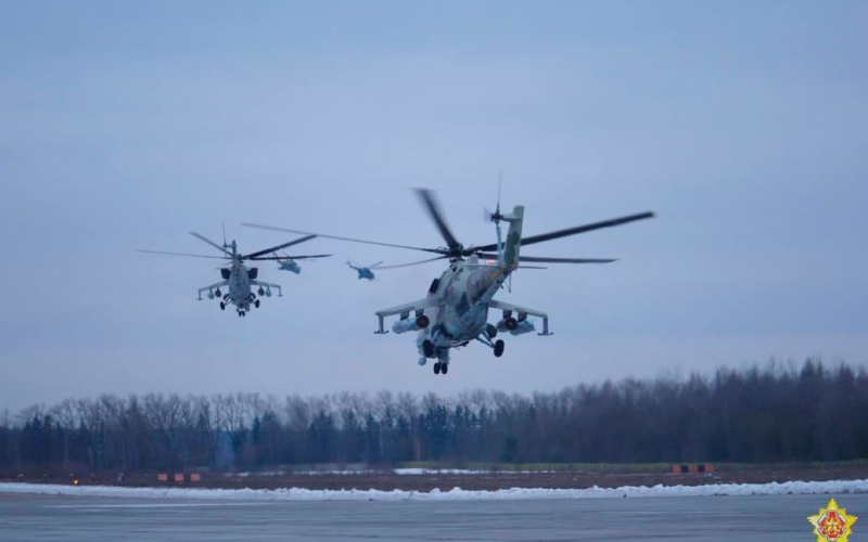 En Bielorrusia, desde la mañana del 19 de enero, hubo un aumento en la actividad aérea, durante el cual se desplegaron helicópteros de combate rusos y bielorrusos desde el centro parte del país hacia el sur.