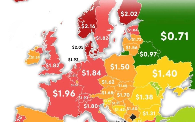 En el mapa publicado que muestra el nivel de los precios del gas en diferentes países europeos, Ucrania se representa dentro de fronteras reconocidas internacionalmente, a pesar de que Vladimir Putin afirma que varias regiones ucranianas son parte de Rusia.