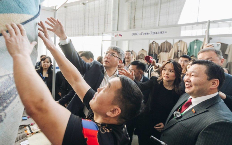 El jefe de la República de Buriatia, Alexei Tsydenov, compró una alfombra con la imagen de Vladimir Putin en la feria ruso-mongola en Ulan-Ude.< /p>