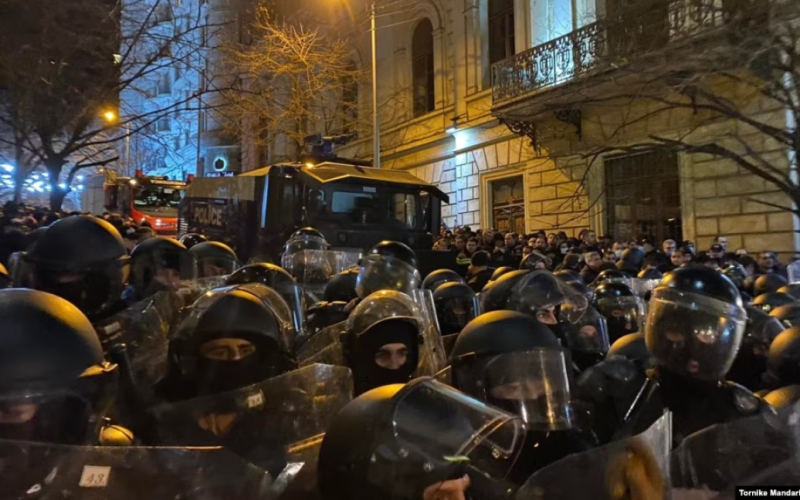Reunidos cerca del edificio del parlamento en el centro de los manifestantes de Tbilisi, hay información sobre enfrentamientos con las fuerzas de seguridad.