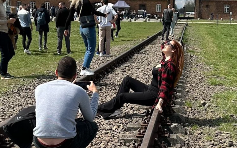 “Foto tomada por turistas frente a Auschwitz hace unos días. Comportamiento escandaloso de personas cuyo juicio ha sido dañado por años de narcisismo inducido por las redes sociales. Un millón de personas han sido asesinadas aquí. Este no es lugar para una selfie “, – escribe en los comentarios de la foto.