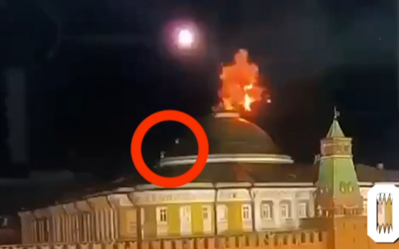 Un video publicado en las redes sociales de un El ataque de un dron desconocido al Kremlin de Moscú muestra a dos personas subiendo a la cúpula del Palacio del Senado, sobre la que ondea la bandera rusa.
