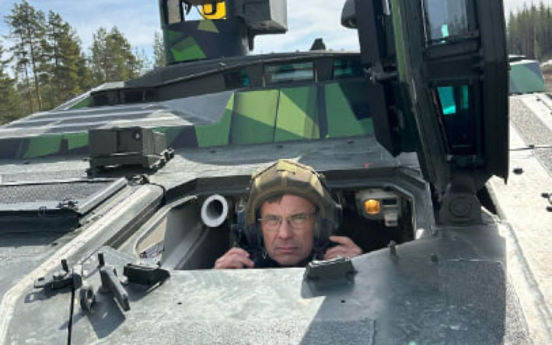 El primer ministro de Suecia, Ulf Kristersson, junto con el ministro de Justicia, Gunnar Strömmer, realizaron una prueba de manejo de un vehículo de combate de infantería (IFV) CV 90.