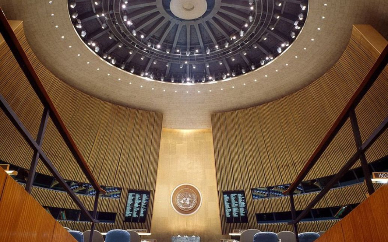 Una postal que representa un salón: un lugar de reunión para representantes de 193 países del mundo, llena de agua del embalse de Kakhovka – recordó elocuentemente a los funcionarios de la ONU la tragedia provocada por la explosión de la central hidroeléctrica de Kakhovskaya por los rusos el 6 de junio.