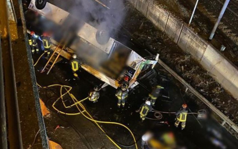 “La Embajada de Ucrania en Roma y el Consulado General en Milán ya se están ocupando del accidente ocurrido por la noche en la autopista A4, cerca de Venecia. Según la información disponible, un autobús turístico con 40 pasajeros se cayó de un paso elevado y cayó desde una altura de unos 30 metros”, dijo Nikolenko.