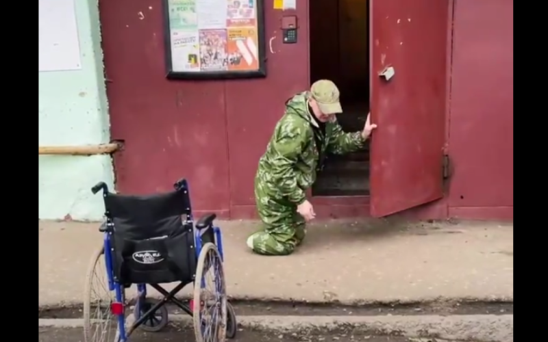 Las publicaciones de propaganda rusas hablaron de él, publicando un vídeo de cómo un militante sin piernas era obligado a gatear a cuatro patas. hasta la entrada y más arriba las escaleras hasta el apartamento, detrás de usted hay una silla de ruedas.