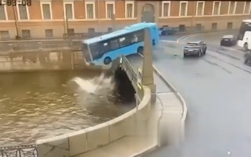 El viernes 10 de mayo, en la ciudad rusa de San Petersburgo, el conductor de un autobús regular con pasajeros, al girar hacia el Puente de los Besos, perdió el control y voló hacia el río Moika.