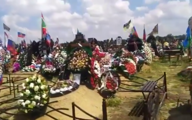 Las imágenes muestran cómo un hombre desconocido camina por el cementerio y dice que aquí están enterrados los soldados rusos que murieron en la guerra de Ucrania.