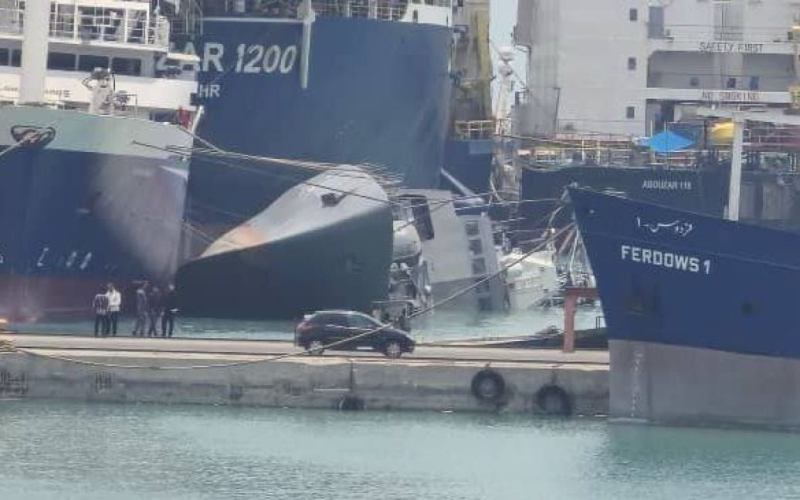 Un barco de guerra iraní se hundió en el puerto.