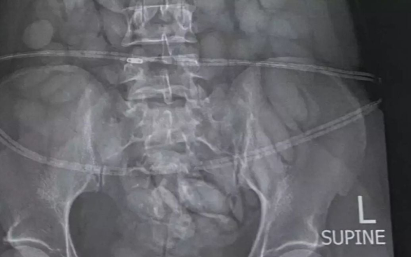 Cuando llegó la mujer de 30 años, fue arrestada y una radiografía reveló instantáneamente todo lo que necesitaban saber, ya que reveló objetos en su estómago.