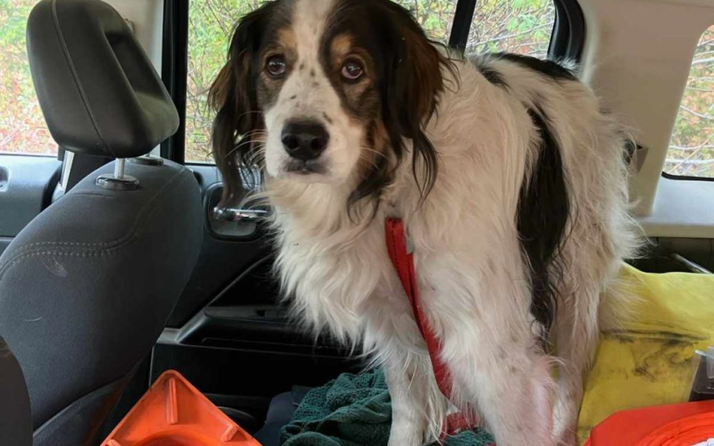 El oficial Wright estaba patrullando el campo cuando se encontró con un perro sentado justo en la carretera. No había ningún edificio residencial cerca, por lo que el agente intentó meter al perro en el coche para encontrar a su dueño. Sin embargo, el perro no quiso subir al coche.
