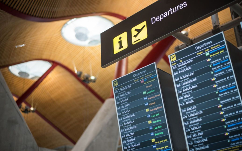 En el sitio web del aeropuerto, la mayoría de los próximos vuelos aparecen como cancelados o retrasado al menos una hora, y el aeropuerto pide que “se tengan en cuenta los retrasos y cancelaciones de vuelos”.
