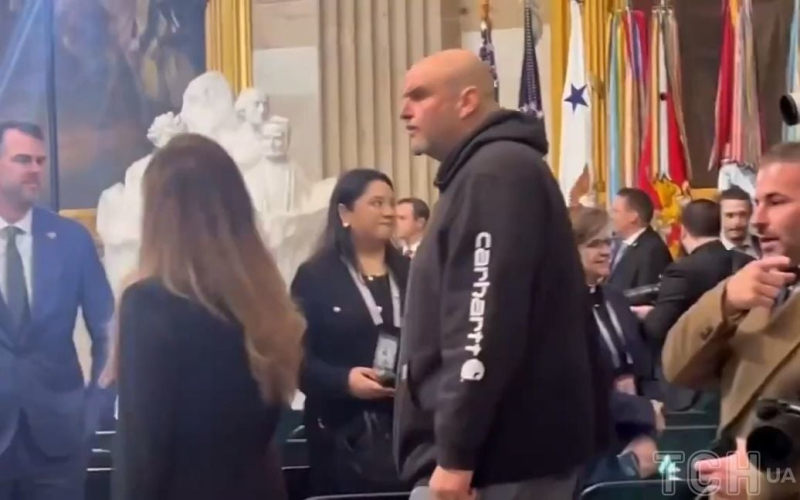 El senador demócrata John Fetterman llegó a la ceremonia de inauguración de Donald Trump en pantalones cortos y una sudadera con capucha.