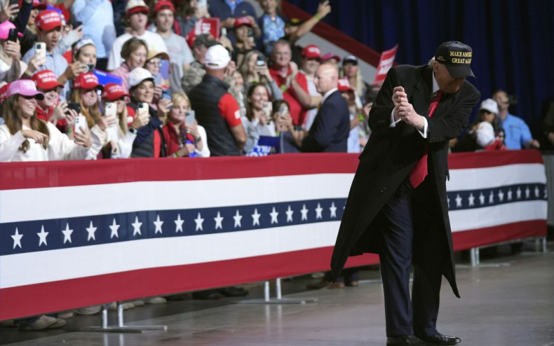Trump, junto con otros, llega a Air Force One (Bort No. 1), los autos para su caravana llegan con el avión de transporte C-17. Explosivos. Hubo un tiroteo cerca del campo de golf.