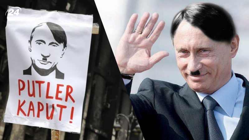 del líder ruso se comparó con su colega histórico con valores similares: el líder de la Alemania nazi Adolf Hitler. Putin fue dibujado por el bigote y el peinado correspondientes. A la corte tampoco le gustó la frase “Putler Kaput”.